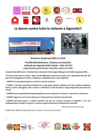 Domenica 18 gennaio 2026 ore 10.30 Presidio/Manifestazione, Piazzale della Catania/Gela