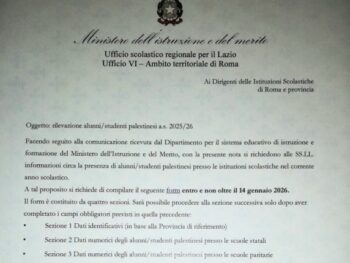 Ministero Istruzione e Merito e Ufficio scolastico regionale “registrano” alunni e alunne palestinesi