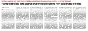 La notizia di una “lista di proscrizione” -perché di questo si tratta, al di là dell’eufemismo parlamentare- contro quaranta istituti romani “colpevoli” di non aver celebrato il Giorno del Ricordo con l’enfasi pretesa dalla destra, segna un punto di non ritorno.