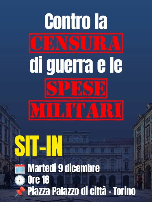 Martedì 9 dicembre, ore 18, Piazza Palazzo di città – Torino Nei giorni scorsi è stata impedita la conferenza dei professori Alessandro Barbero e Angelo d’Orsi su “La democrazia in tempo di guerra” che si sarebbe dovuta tenere al Teatro Grande Valdocco.Ci troviamo di fronte ad una censura senza precedenti, una censura da far invidia … Leggi tutto